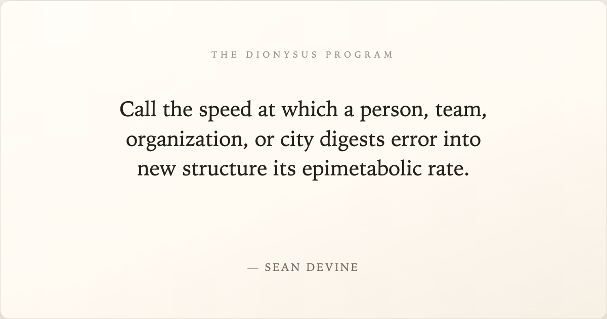 Call the speed at which a person, team, organization, or city digests error into new structure its epimetabolic rate.
