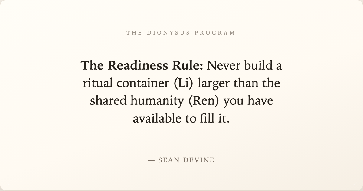The Readiness Rule: Never build a ritual container (Li) larger than the shared humanity (Ren) you have available to fill it.