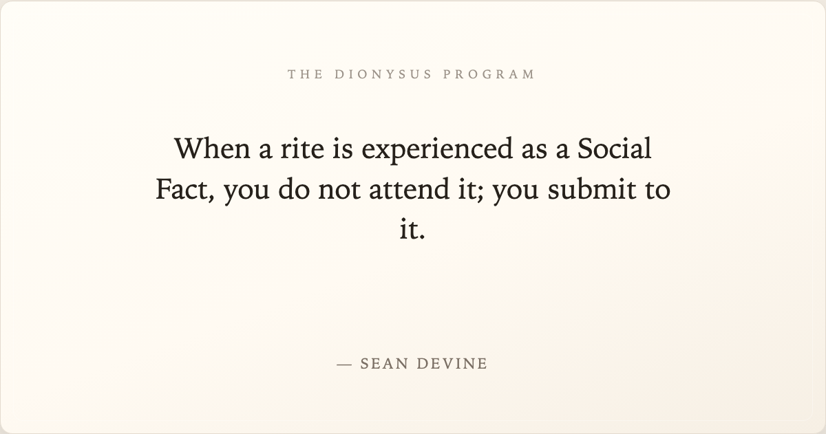When a rite is experienced as a Social Fact, you do not attend it; you submit to it.