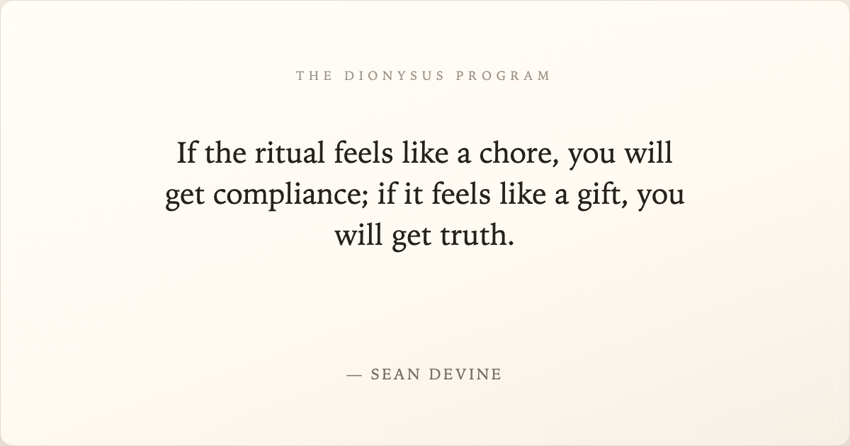 If the ritual feels like a chore, you will get compliance; if it feels like a gift, you will get truth.