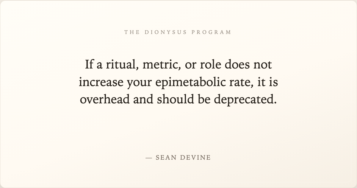 If a ritual, metric, or role does not increase your epimetabolic rate, it is overhead and should be deprecated.