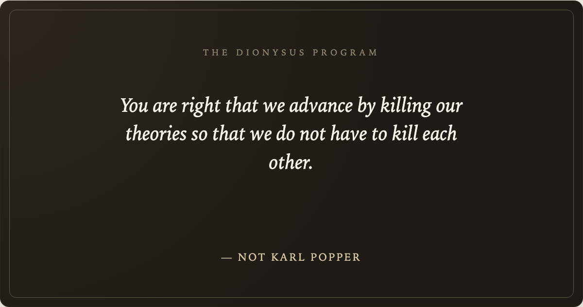 You are right that we advance by killing our theories so that we do not have to kill each other.