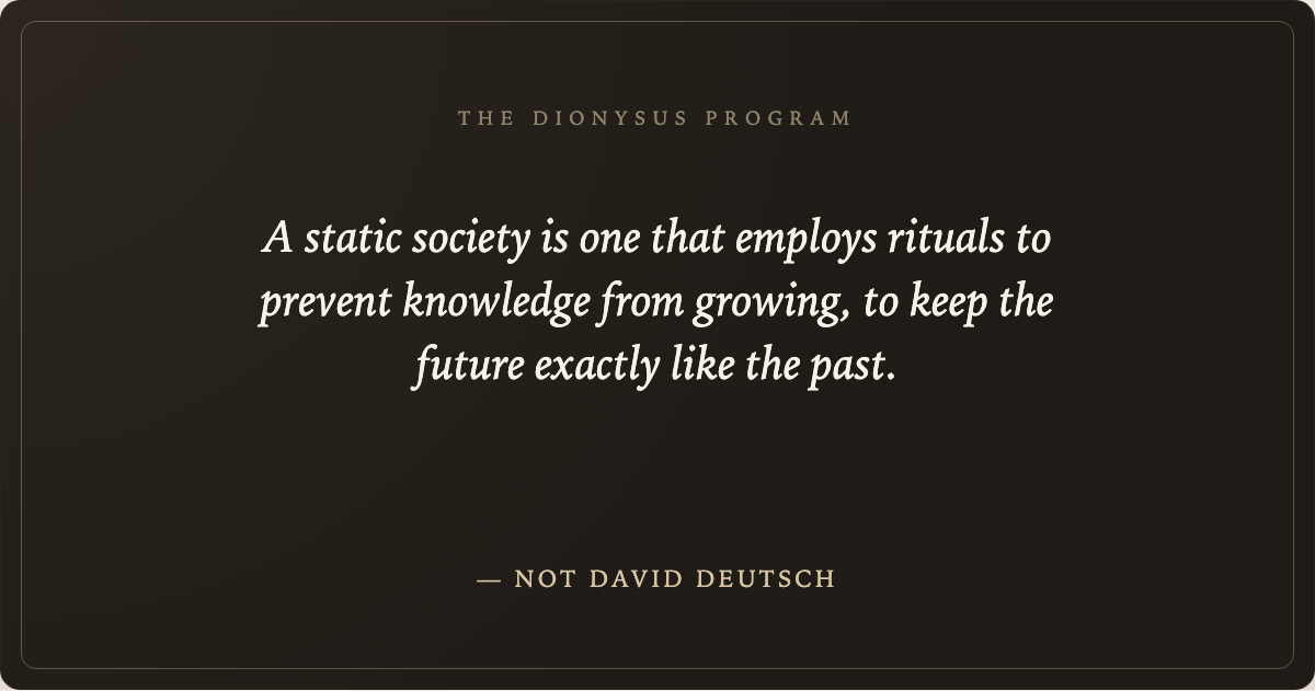 A static society is one that employs rituals to prevent knowledge from growing, to keep the future exactly like the past.